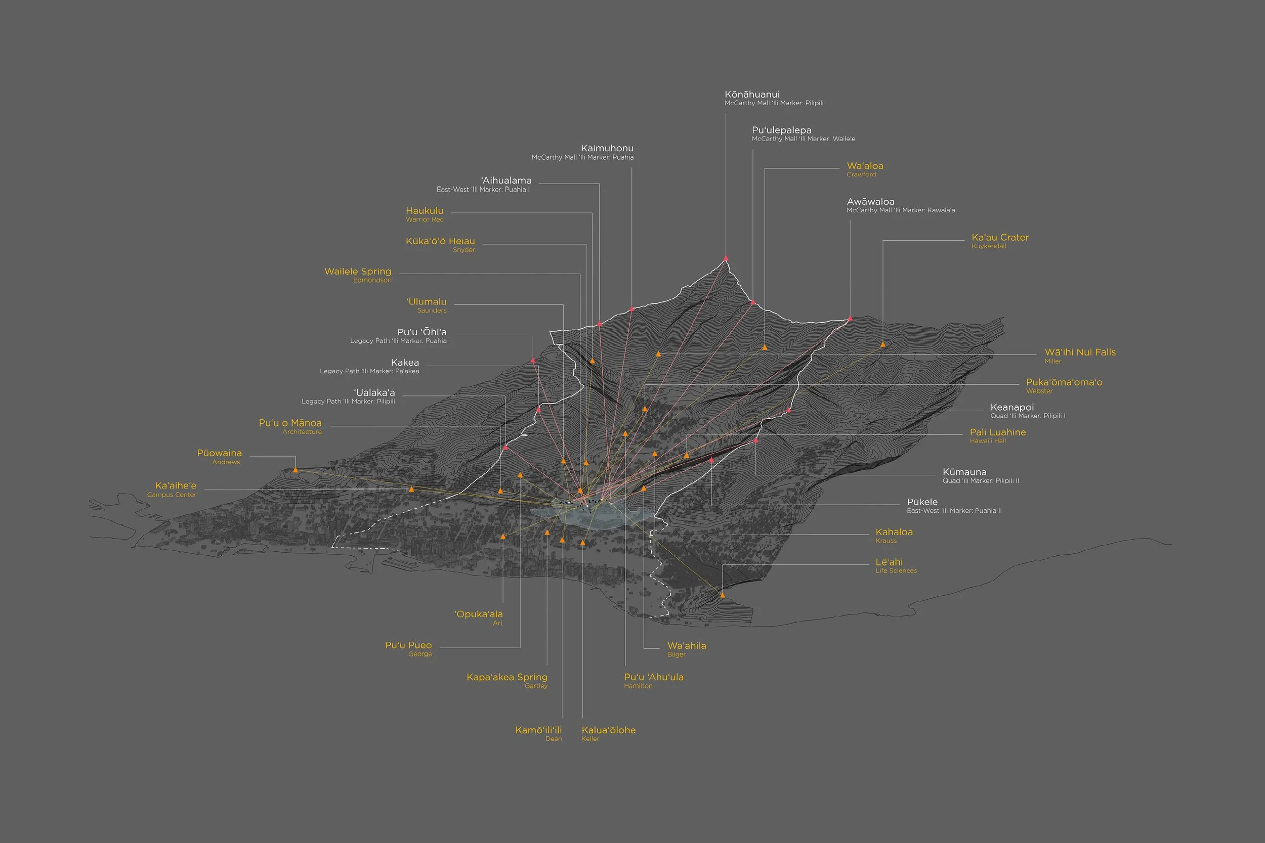 The project responds to an institutional need to reimagine campus signage while embodying the university’s commitment to being a “Native Hawaiian place of learning.” Beyond Wayfinding began with a proof-of-concept design informed by interviews, campus tours, cross-departmental conversations, and the input of more than 150 faculty, researchers, and students.